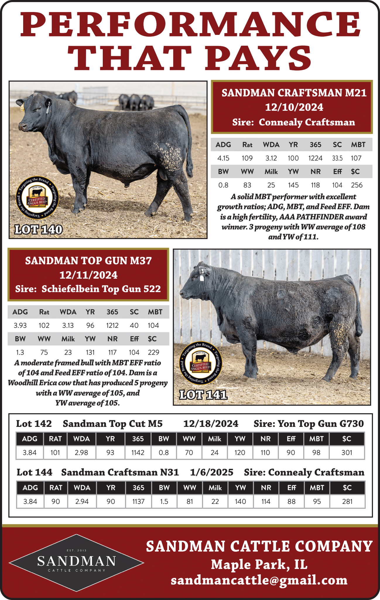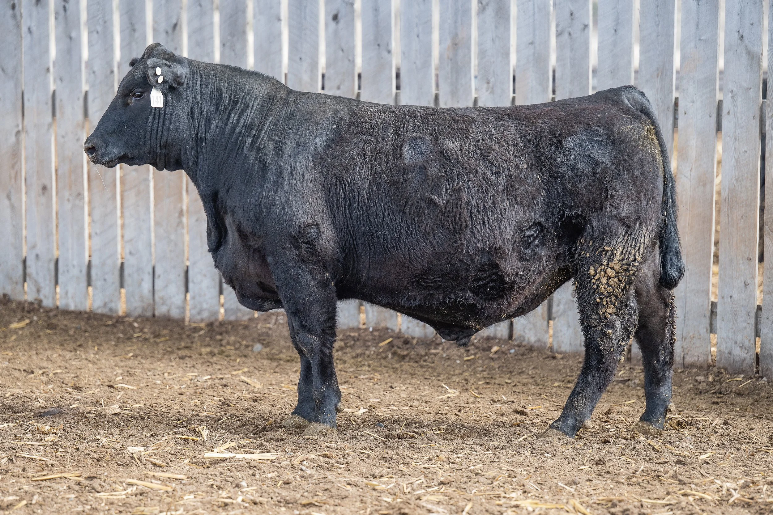 Second qualifying bull at Midland from his Grand Dam U181-C2 with 12 progeny. M55 has robust carcass traits with outstanding SC, DOC, and Foot Scores.