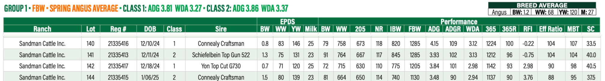 A solid MBT performer with excellent growth ratios; ADG, MBT, and Feed EFF. Dam is a high fertility, AAA PATHFINDER award winner. 3 progeny with WW average of 108 and YW of 111.